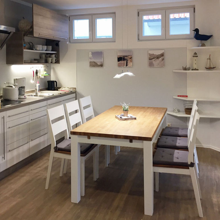Ceran-Kochfeld, Kühlschrank mit Eisfach, Toaster, Wasserkocher, Kaffeemaschine, Mixer, 2x Kabel-TV / Flachbildschirm, DVD-Gerät, Musikanlage, CD-Player und Radio